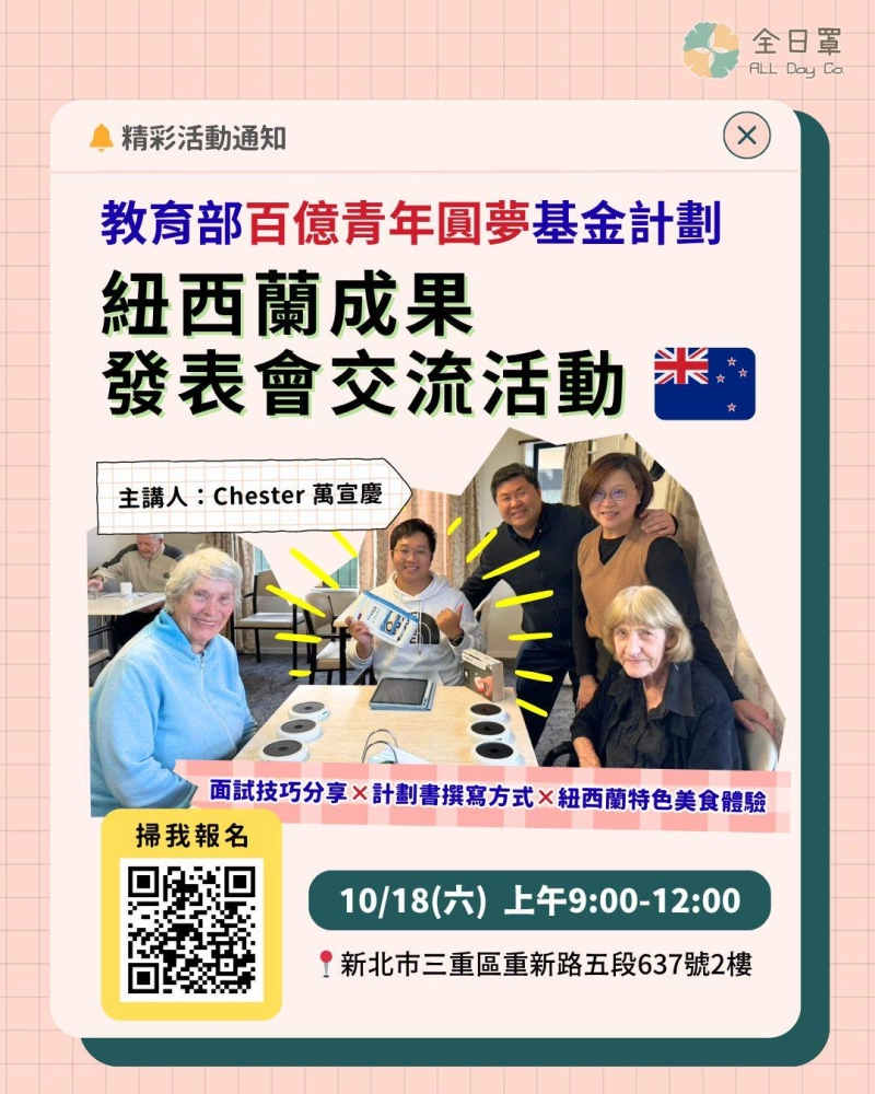 本計畫「#紐西蘭銀髮產業國際鏈結及青年培力圓夢計畫 」由全日罩的萬宣慶Chester創辦人執行,透過 #
